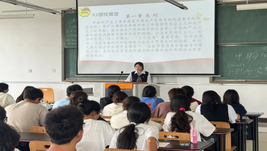 随后,团委负责人杜悠悠老师对全体学员提出了团课纪律方面的要求,她强调,课堂纪律至关重要,上团课前着装要规范,团员必须正确佩戴团徽,学员需保持课堂安静,认真听讲,不做与课堂无关的事情。手机等电子设备要调至静音或振动模式,避免在课堂上使用手机,如接听电话。希望学员们在团课的学习过程中认真记好笔记,积极的参与线下的团课交流,各组长要担起责任,带领学员们完成之后的团课。