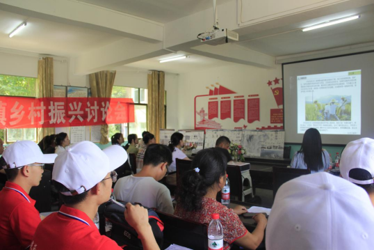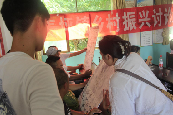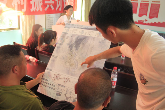 党委书记何璘老师与乡政府工作人员及村委代表商讨乡村规划方案
